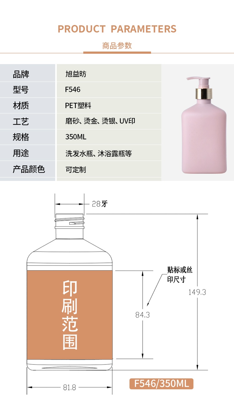 350ml shampoo bottle High-end body lotion bottle pet body wash lotion bottle