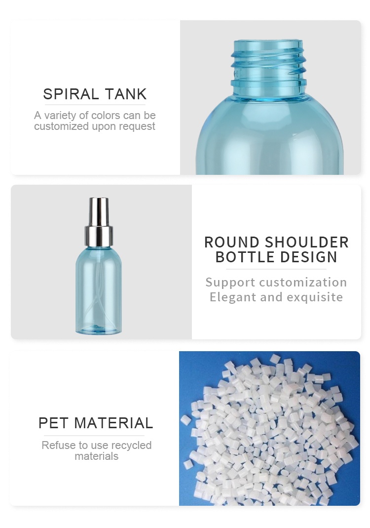 Good quality Factory directly Sale Light blue 100/150/180ml PET custom Eco friendly Cosmetic spray bottle